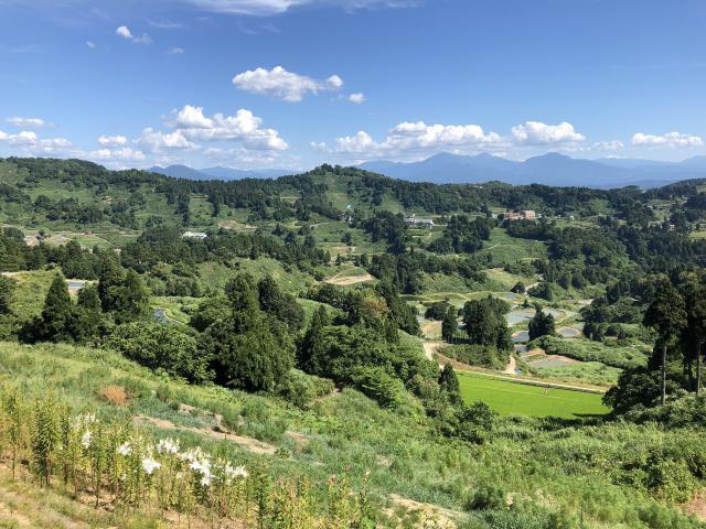 Lugar famoso de Terrazas de arroz y Terrazas de estanques "Tameike to Echigo Sanzan (Terraza de estanques y las 3 montañas de Echigo)"