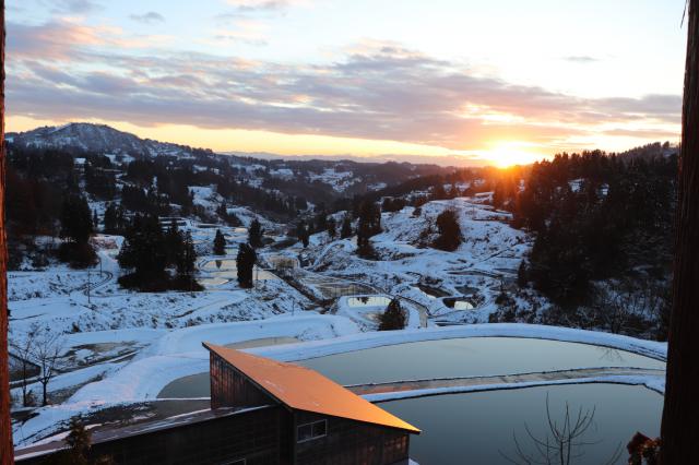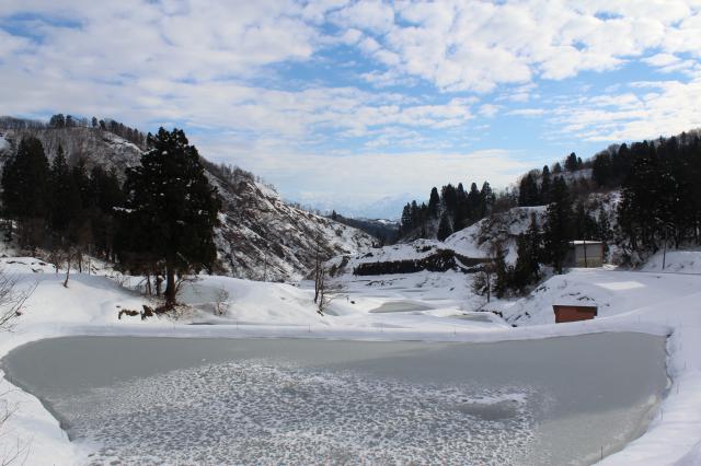 A top tourist location of tiered rice paddies and koi ponds (Tiered koi ponds : Echigo sanzan)